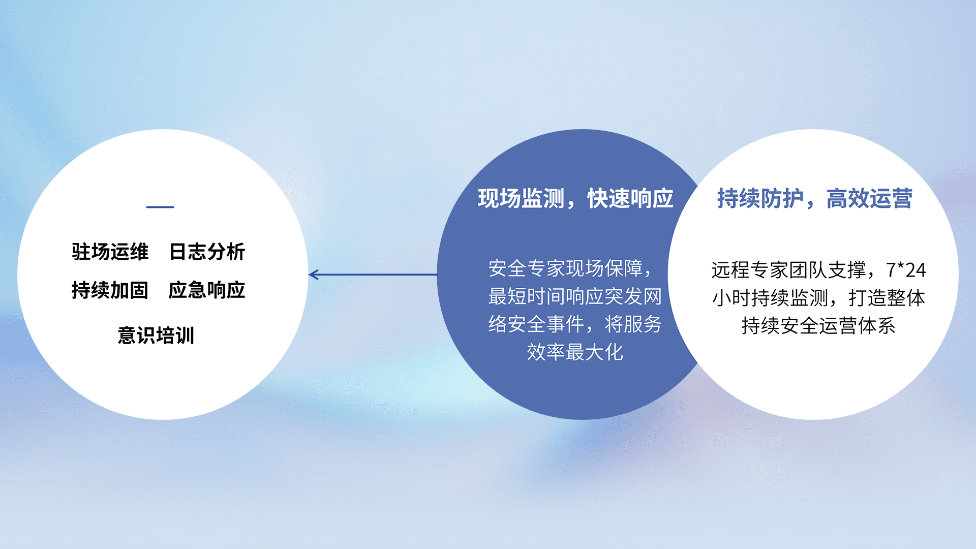 针对客户行业特性,,,提供专属的一站式安全管理服务,,帮助客户全面感知网络空间威胁,,通过安全专家的线上、、、、线下防护支持,,,实现风险闭环,,,将安全保障常态化,,,为客户打造常态化安全运维运营服务。。